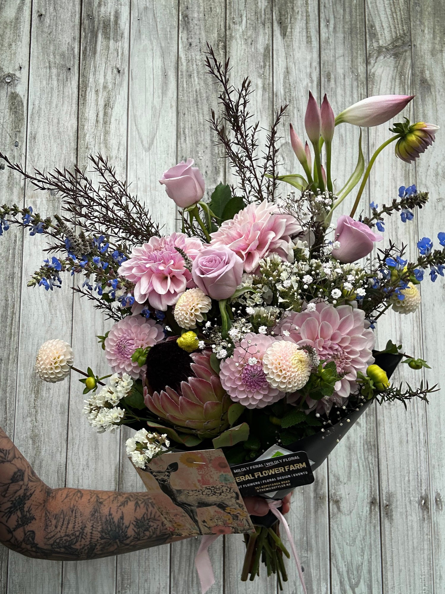 Seasonal bouquets made with love, good vibes, dahlia and our specialty gerbera.