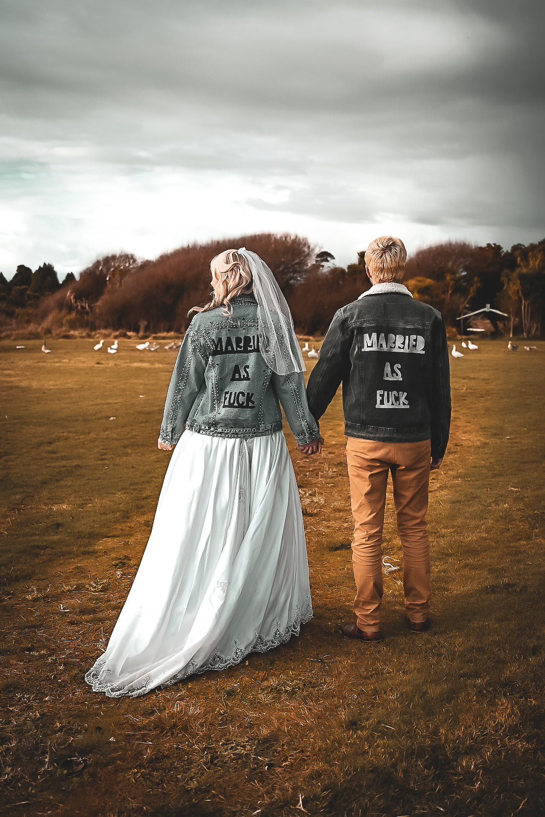 Our “Married as F*ck” jackets are designed for couples who celebrate love with a fierce, unapologetic edge. These custom jackets make a bold statement on your wedding day and beyond, giving you a personalised piece that’s as unique as your love story. Available in various denim colors with options for custom text, they’re perfect for those who aren’t afraid to stand out. Get married, get wild, and wear it proudly - these jackets are for the lovers who do things their way.